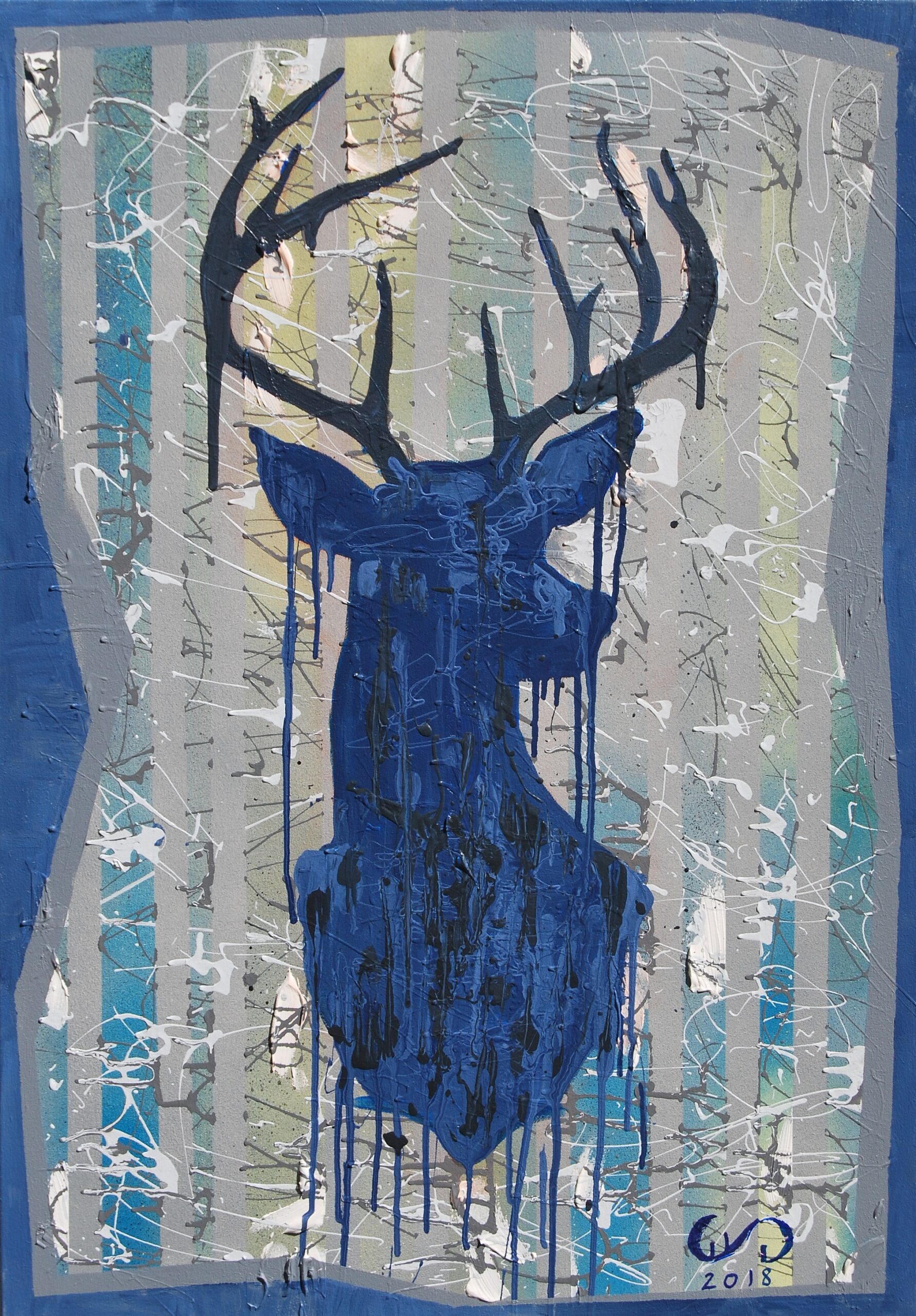 Jelenie, sarny, renifery to piękne zwierzęta. Bardzo dostojne i dzikie. Obraz o tej tematyce jest źle kojarzony przez miliony “jelonków na rykowisku”. Tu autorka pracy pokazuje nam, że można do takiego tematu odnieść się w zaskakujący i niekonwencjonalny sposób. Praca akrylowa w ciepłych kolorach żółci i pomarańczy, tło w mocnych plakatowych pomarańczach a rogacz w neutralnych szarościach . Praca jest na płótnie ,miejscami matowa, miejscami błyszcząca . Bardzo designerska. Opisana na odwrocie imieniem, nazwiskiem , znakiem autorskim, pełnym opisem oraz datą. Ten obraz wspaniale uzupełni i ożywi wnętrze salonu, sypialni jak również gabinetu. Boki obrazu zamalowane, jest gotowy do powieszenia.